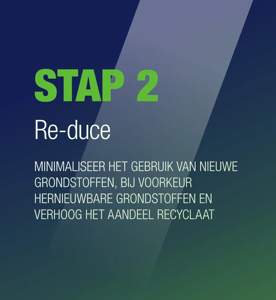 Circulariteit begint voor ons aan het begin van de keten; de inputstromen van ons product. Deze worden ‘circulair proof’. Dat begint dus bij het gebruik van materialen die in de basis gezond en veilig zijn; vrij van toegevoegde additieven en toxinen, hernieuwbaar en/of uit secundaire materialen bestaan en geen druk leggen op de grondstoffenvoorraad.